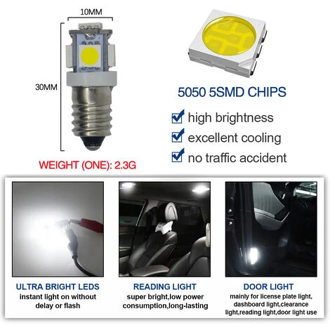 Ampoules DC Mini E10, puissance : 0,5 W, luminosité : 50 lm.
