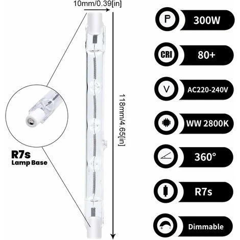 Super lumineux 300 W : dimensions : 10 x 118 mm. En tant que spots et projecteurs, en utilisant nos lampes de garage, les caractéristiques d’éclairage mural peuvent mieux satisfaire l’effet visuel.