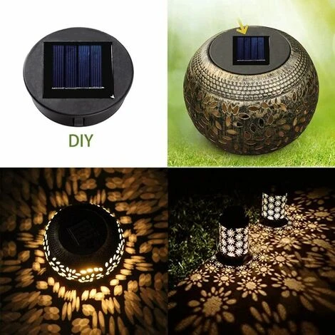 Veuillez ouvrir l’interrupteur pendant le chargement, l’interrupteur est en bas.Cette lampe de couvercle de bricolage absorbe l’énergie solaire pendant la journée et s’allume automatiquement au crépuscule.