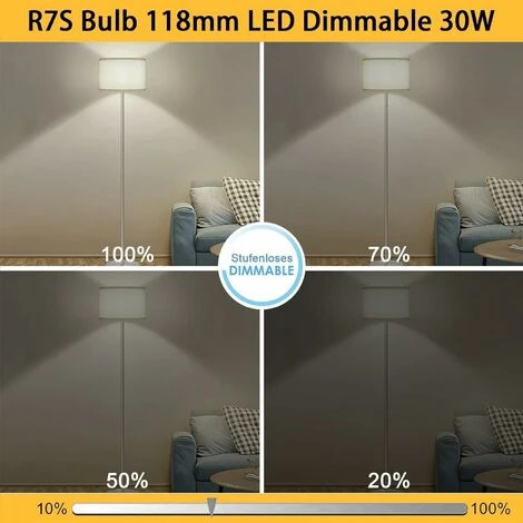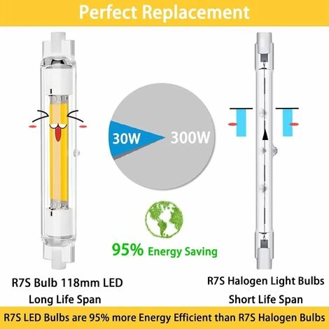 【Haute luminosité & Pas de Scintillement 】Ampoule R7S LED 118mm haute luminosité, Pas d’éclairage stroboscopique et uniforme, soulage considérablement la fatigue oculaire et améliore le confort visuel. angle de faisceau de 360 degrés pour une puissance lumineuse maximale(3000lm). Pas de scintillement protège vos yeux, La lumière à 360 degrés garantit que chaque coin de votre pièce est éclairé. 【R7S LED 118mm Dimmable】:Cette Ampoule LED R7S 118mm Dimmable gradable de notre part prend en charge la gradation. Compatible avec la plupart des variateurs, vous pouvez régler l’intensité lumineuse en fonction de la scène ou non. La luminosité de l’ampoule r7s led peut être réglée de 10% à 100%. Le rendu des couleurs est supérieur à 90, qui permet à la fois de retrouver la couleur d’origine et de créer une atmosphère agréable dans les grands espaces. 【Réduire les coûts】: Ampoule R7S LED 118mm 30W remplace des ampoules crayon halogène R7S 300W. Réduire la consommation d’énergie plus de 90%. Faible coût d’entretien et ce qui peut réduire les problèmes de remplacement fréquent de la lampe. Les matériaux céramiques résistent aux températures élevées et à l’abrasion. Démarre sans délai, ne surchauffe pas, est plus sûr que les lampes à incandescence. 【Taille & Remarquer】: Ampoule R7S Taille Ø18x118mm, facile à installer. 30,000 heures de durée de vie, Le corps de la lampe en céramique résiste aux températures élevées et est plus sûrs que l’ampoule à incandescence. Peut être utilisé comme une lampe de projection pour ajouter une touche de gloire à votre pièce. Avant d’acheter, veuillez vous assurer que l’ampoule s’adapte au support de lampe en faisant attention à la taille. 【Application】La LED R7S 118mm est idéale pour l’éclairage intérieur (mur, projecteur, plafond, lampadaire, bureau, pièce, couloir ou lampe de bureau indirecte, etc.). Les ampoules LED R7S sont adaptées à un usage extérieur (éclairage de terrasse, projecteur, panneau d’affichage, éclairage de jardin, éclairages spéciaux, éclairage de sécurité, atelier, caves, garages et entrepôts, etc.)