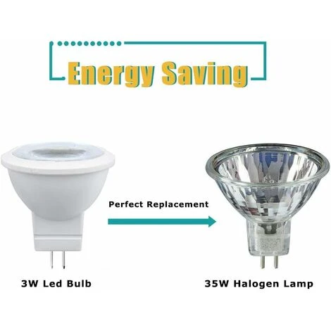 Economie d’énergie : faible consommation énergétique, 3W MR11 GU4 Ampoule LED équivaut à 35W d’une ampoule à incandescence, économiser plus de 90% d’électricité