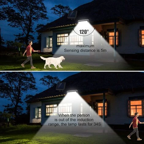 【Capteur de mouvement PIR sensible】 Adopté avec un capteur de mouvement PIR sensible, la lumière solaire avec capteur de mouvement a une distance de détection de 3 à 5 mètres et un angle de détection de 120 °. Lorsque les gens approchent, la lumière s’allume instantanément; Lorsque les gens sont partis, la lumière restera allumée pendant 30 à 45 secondes