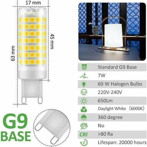 ![Ampoule LED G9 7W, 430LM, Blanc Froid 6000K, 220-240V, CRI 85, NON-Dimmable, Économie D'énergie, Base En Céramique, Culot G9 Standard, Lot De 6 [Classe énergétique D] 5 Ampoule LED G9 7W, 430LM, Blanc Froid 6000K, 220-240V, CRI 85, NON-Dimmable, Économie D'énergie, Base En Céramique, Culot G9 Standard, Lot De 6 [Classe énergétique D] – Image 3](https://www.ampouledecor.com/wp-content/uploads/2025/03/93859926_3.webp)