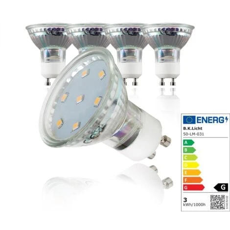 B.K.Licht lot de 5 ampoules 3W LED GU10, 250 Lumen par ampoule, lumière blanche chaude de 3000 Kelvin, équivaut ampoule halogène 25W, 230V, forme réflecteur, Ø 58mm