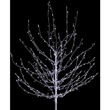 Décorez et illuminez votre intérieur avec cet arbre lumineux. Composé d’un pied métal + d’un tronc en métal recouvert de ruban ton sur ton + branches où s’enroulent des guirlandes avec micro ampoules LED. Lumière LED fixe. Se branche sur le secteur avec le transformateur inclus et le câble longueur 5 m. 400 ampoules micro Leds non remplaçables, coloris blanc froid. En plastique pvc et vinyle. Hauteur 150 cm Diamètre entièrement déployé : 90 cm env Poids 1,5 kg.