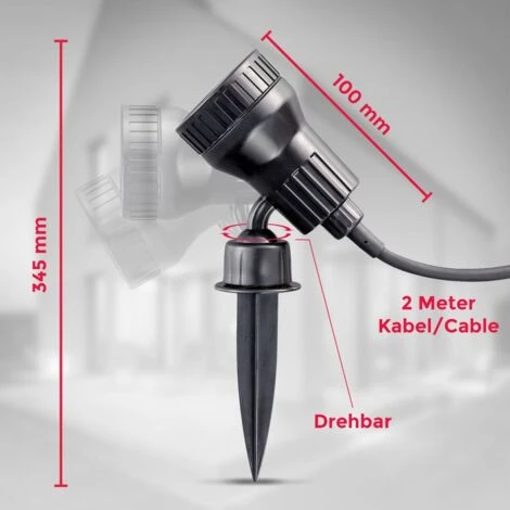 C’est bon à savoir: Piquet de jardin avec classe de protection IP44 – résistant aux éclaboussures. Deux filtres de couleur sont inclus – orange et vert. Câble de connexion – 2 mètres. Support mural et pointe de terre inclus. Tourne et pivote. Non gradable.