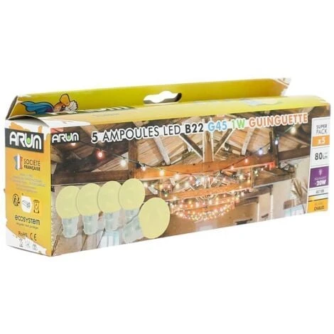 Lot de 5 Ampoules Led Blanc Chaud 1 watt (équivalent à 10 watt)
