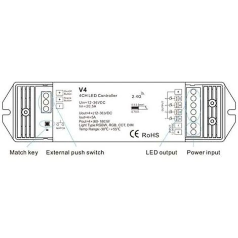 Longue portée 30m, max 5A/channel, total 20A ,4 voies.