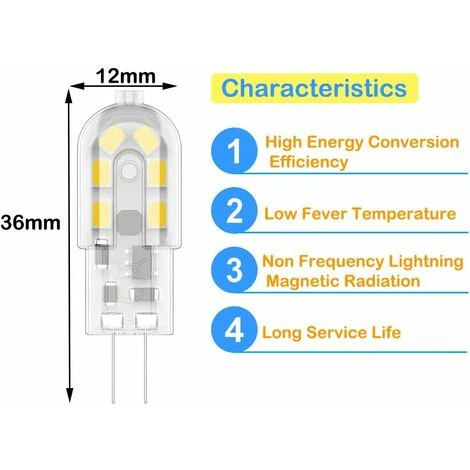 ![G4 2W LED Ampoule, 20W Ampoules Halogènes équivalentes, Blanc Chaud 3000K,200Lm,12x SMD,12V AC/DC - Pack De 10 [Classe énergétique A+] 5 G4 2W LED Ampoule, 20W Ampoules Halogènes équivalentes, Blanc Chaud 3000K,200Lm,12x SMD,12V AC/DC - Pack De 10 [Classe énergétique A+] – Image 3](https://www.ampouledecor.com/wp-content/uploads/2025/03/65500463_3.webp)