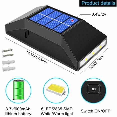 - 【Large application】 – Conception étanche. Les appliques murales solaires ajouteront de la couleur et de l’atmosphère aux lieux extérieurs. Appliquer pour le jardin, la clôture, le mur extérieur, le chemin, la cour, etc.