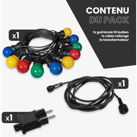 Un transformateur et un câble rallonge sont inclus dans ce pack.N’hésitez plus, la guirlande guinguette est l’objet tendance du moment à intégrer dans toutes vos décorations !