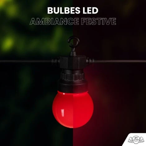 Pour vos douces soirées d’été ou tous vos évènements qui vous tiennent à cœur, apportez l’esprit guinguette à votre décoration en installant la guirlande guinguette multicolore 10 mètres composées de 10 bulbes de couleurs jaune, bleu, rouge et vert.