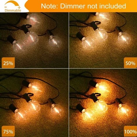 l’ampoule à votre guise. Ces guirlande lumineuse ampoule apporteront une ambiance romantique et vintage à votre espace(Remarque : Gradateur non inclus). - 【Scénarios D’utilisation Étendus】 : Les guirlandes lumineuses extérieures émettent une lumière chaude naturelle (2700K), créant une atmosphère chaleureuse et romantique, adaptée pour intérieur/extérieur, jardin, terrasse, bistro, barbecue, dîner,