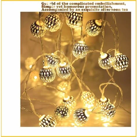 - Mise à jour TENDANCE: Entièrement à la mode – une élégante batterie de chaîne lumineuse à LED orientale avec de belles boules en métal – crée une atmosphère agréable dans chaque pièce Avec la chaîne lumineuse marocaine, l’arbre de Noël gagne un éclat particulier cette année.