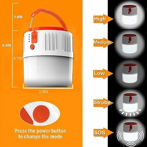 5 modes d’éclairage : il y a 5 modes d’éclairage des lumières de tente, y compris le niveau de luminosité élevé/moyen/faible/clignotant et le mode SOS clignotant, qui répondront à la plupart de vos besoins, même en cas d’urgence