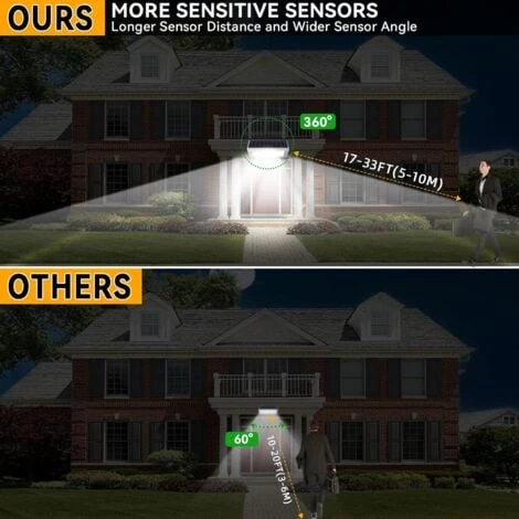 4 modes de fonctionnement intelligents : par rapport à d’autres lampes solaires avec seulement 3 modes, la lampe solaire de sécurité extérieure dispose de 4 modes de fonctionnement, en particulier le mode d’urgence, pour faire face à toute utilisation d’urgence ou non-utilisation. Idéal pour les familles.