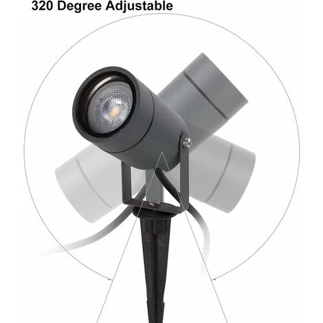permet de changer le blub avec des couleurs plus différentes. La boîte de jonction IP68 en prime permet d’y ajouter un câble supplémentaire. Rotation large de 320 degrés, adaptée aux arbres, fleurs et plantes, arbustes.