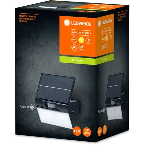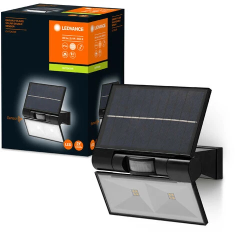 LEDVANCE ENDURA SOLAR DOUBLE Sensor – Projecteur Solaire, Projecteur à LED Avec Détecteur De Mouvement Et Détecteur De Lumière Du Jour, éclairage Extérieur Avec Protection IP44, 3000K Blanc Chaud