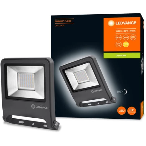 LEDVANCE Projecteur LED Pour Mur, ENDURA® FLOOD Blanc Chaud / 50 W, 220…240 V, Angle De Rayonnement: 120°, Blanc Chaud, 3000 K, Matériau: Aluminium, IP65