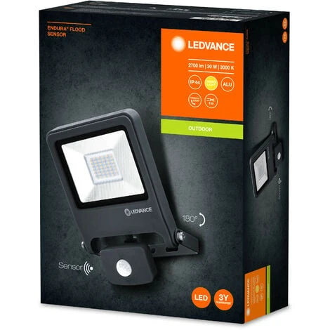LEDVANCE Projecteur LED Pour Mur, ENDURA FLOOD Sensor Blanc Chaud / 30 W, 220…240 V, Angle De Rayonnement: 120°, Blanc Chaud, 3000K