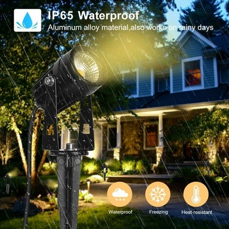 【Spot de jardin étanche IP65 avec piquet de sol】 Contrairement aux autres lampes de jardin traditionnelles, notre spot LED est étanche IP65 et le câble est étanche IP68, résistant au froid et aux UV. Le boîtier et le câble résistant aux intempéries protègent la lumière du jardin de l’humidité et de la poussière; L’anneau métallique sur la queue peut améliorer l’effet imperméable, idéal pour une utilisation en extérieur et dans le jardin. Remarque: Le connecteur est IP44, veuillez le placer dan