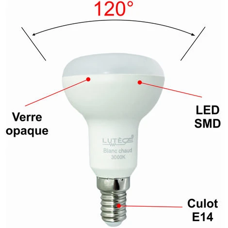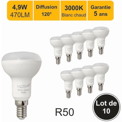 Lot de 10 mpoules LED réflecteur R50 E14 4,9W (equiv. 40W) 470Lm 3000K
