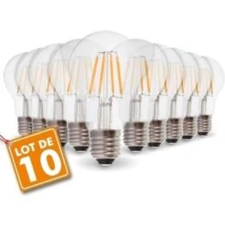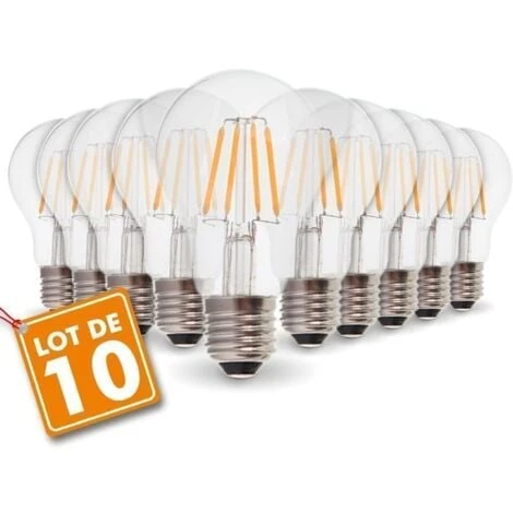 Lot de 10 Ampoules LED 6W E27 A65 technologie filament LED de teinte blanc chaud 2700°K