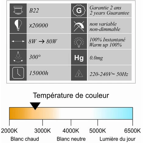 - Des ampoules de haute qualité : CE et RoHS approuvés avec 2 ans de garantie.