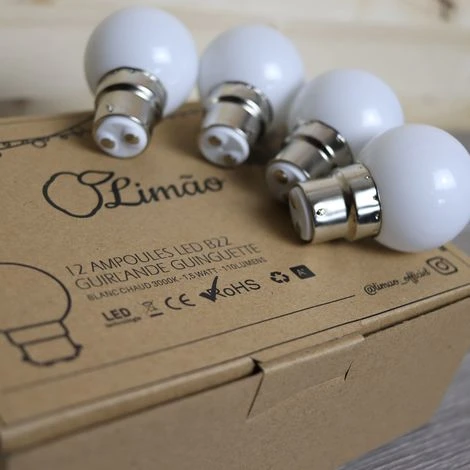 Ampoule LED B22 1,5W Ronde G45 – Technologie LED SMD – 230V – 110 lumens – Puissance de 1,5W équivalente à 15W – Ce lot contient 12 ampoules LED B22 1,5W Blanc Chaud 3000K.