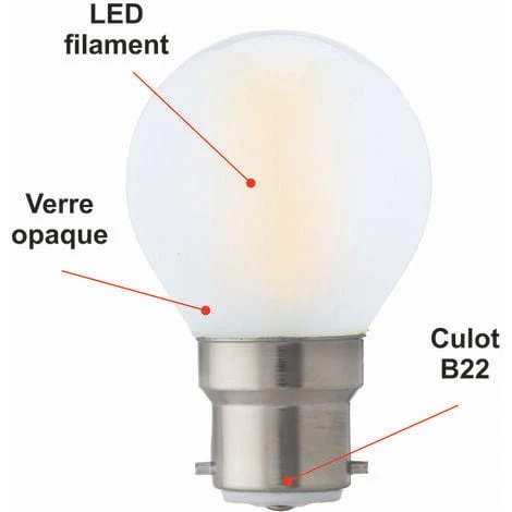Lot de 12 ampoulesLED filament sphérique B22 4W (equiv. 40W) 470Lm 2700K