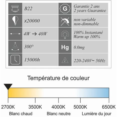 - Des ampoules de haute qualité : CE et RoHS approuvés avec 2 ans de garantie.