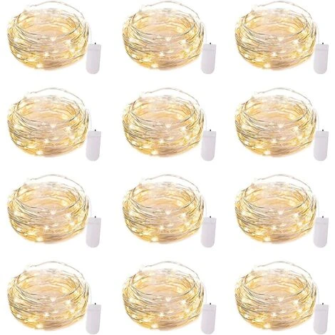 Lot De 12 Guirlandes Lumineuses LED à Piles étanches 7 Pieds 20 LED Firefly Starry Moon Lights Pour Bricolage Fête De Mariage Chambre Patio Nol