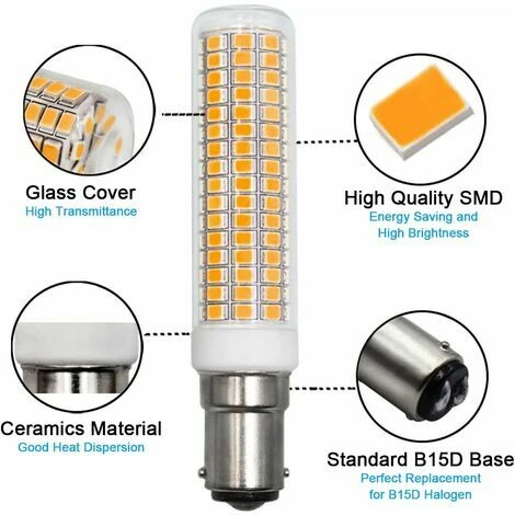 Type universel : la tension de sortie est de 100 V à 265 V, et la tension stable peut être utilisée non seulement en Europe, mais aussi dans d’autres pays.[économie d’énergie B15D ] La 7,5 W remplace parfaitement les halogènes 70 W 100 W 120 W B15D. La consommation d’énergie par lampe est de 7,5 kWh / 1000 h, ce qui permet d’économiser 90 % de la facture d’électricité. Particulièrement adapté pour remplacer le lampadaire.