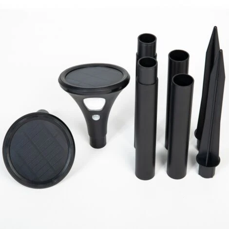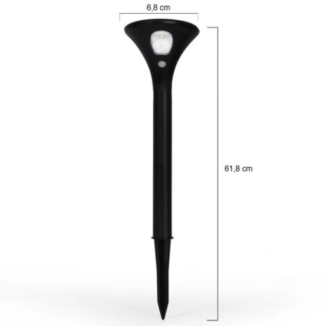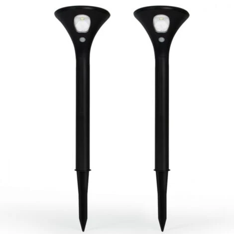 Descriptif du lot de 2 lampes solaires LEDCréez un effet lumineux de haute qualité lors de votre passage dans votre allée ou votre jardin. Avec leur détecteur de mouvement intégré, les bornes LED 2 en 1 vous facilitent la vie : elles s’éclairent dès qu’une présence est détectée et ne demandent ni fil ni branchement. Le capteur solaire permet une alimentation continue, été comme hiver ! Installez votre lot de 2 lampes solaires où vous le souhaitez en un clin d’œil puisqu’elles ne nécessitent pas de fixation particulière. Choisissez un emplacement idéal et plantez-les en toute simplicité. Grâce aux 3 modes de fonctionnement, vous pouvez régler l’intensité de la luminosité : 1. Balisage : 10% de luminosité 2. Détecteur de mouvement : 100% de luminosité3. Balisage + détecteur de mouvement Avec leur autonomie allant jusqu’à 8 heures, ne vous souciez plus de rentrer chez vous dans l’obscurité et profitez d’un éclairage LED de qualité ! Dimensions du lot de 2 lampes solaires LED- Dimensions hors tout : Diamètre 6,8 cm x Hauteur (avec piquet) 61,8 cm- Bornes résistantes à l’eau IP44- Batterie Li-ion 3,7V – 1200mAh- Panneau solaire 5,5V – 0,8W- Matière : ABS noir