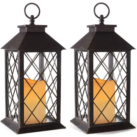 1. La lanterne �� bougie vintage grandeur nature, avec des vitres, des grilles crois��es et un rev��tement noir m��tallique en PP, cr��e une aura de charme d’antan.