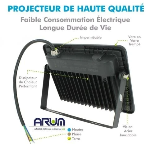 Ces projecteurs LED 50W compact ultra slim sont idéals pour éclairer votre extérieur ou lieux de passage (IP65)