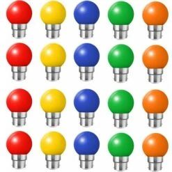 LOT DE 20x Ampoules Guirlande Rouge, Jaune, Bleu, Orange, verte, type Guinguette B22 2W équivalent 20W 50000 heures incassables