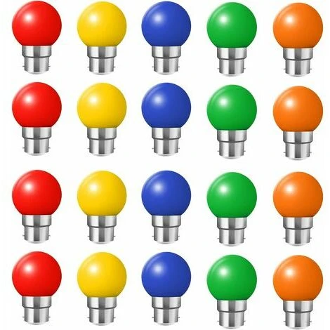Ce lot contient 20 ampoules LED 2W culot B22 baillonette ( 4 de chaque couleur)