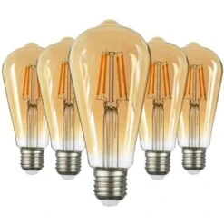 Lot de 5 Ampoules LED E27 7W Filament LED verre ambré, lumière chaude 2200°K
