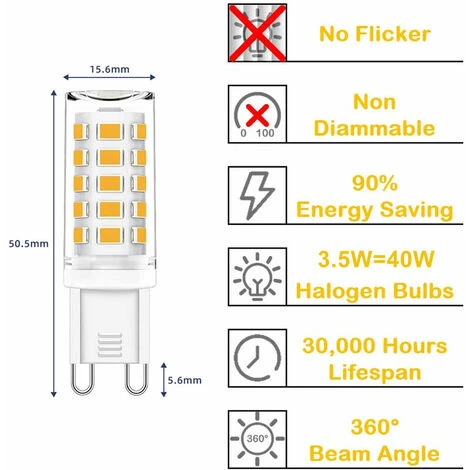 1, Cette LED G9 3.5W n’est pas dimmable. N’utilisez pas de gradateurs car ils provoqueront des scintillements ou du bruit.