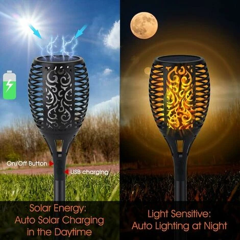 【Imperméable à l’eau Eternal Flame lights 】IP65 imperméable à l’eau et anti-coups de soleil lampes solaires extérieures avec la protection d’entrée, deviennent plus stables par mauvais temps de pluie, vent et neige.