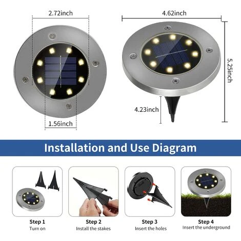 【ON / OFF AUTOMATIQUE】 activer automatiquement la nuit et éteindre automatiquement en ce qui concerne le soleil. Le solaire des chemins construits -in-capteurs sensibles reconnaît correctement la lumière, dans l’obscurité, la lumière est automatiquement allumée.