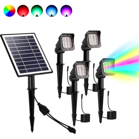Meykoers Lampe Spot LED Solaire, avec Panneau Solaire Lampe Jardin, 4pcs Extérieur Solaire pour Jardin