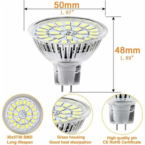 ![MR16 Ampoule LED Lampe Bulb, GU5.3 5W Lumière LED, Equivalent 50W Ampoule Halogène Blanc Froid 6000K 450LM AC/DC 12V-24V Non-dimmable Spot LED (Lot De 10) [Classe énergétique F] 4 MR16 Ampoule LED Lampe Bulb, GU5.3 5W Lumière LED, Equivalent 50W Ampoule Halogène Blanc Froid 6000K 450LM AC/DC 12V-24V Non-dimmable Spot LED (Lot De 10) [Classe énergétique F] – Image 2](https://www.ampouledecor.com/wp-content/uploads/2025/03/95793453_2.webp)