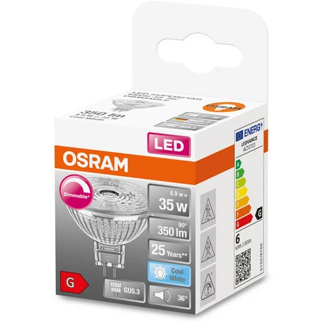 OSRAM Ampoule LED à Réflecteur – GU5.3 – Cool White – 4000 K – 4,90 W – Remplacement Pour 35-W-Lampada Con Riflettore – LED SUPERSTAR MR16 12 V