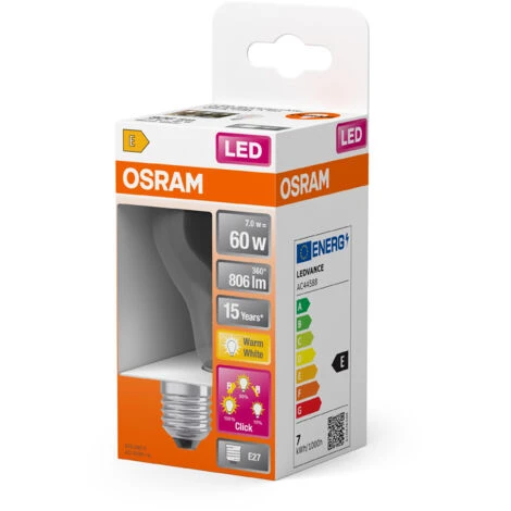OSRAM Ampoule LED – E27 – Warm White – 2700 K – 7 W – Remplacement Pour 60-W-Incandescent Bulb – Clair – LED THREE STEP DIM CLASSIC A