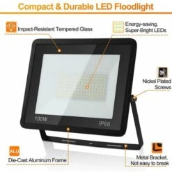 Projecteur LED ATRIA 100W NOIR Eq 800W IP66 Extérieur Température De Couleur: Blanc Froid 6000K