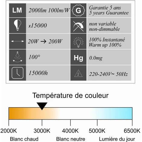 - Durée de vie : 15 000 heures