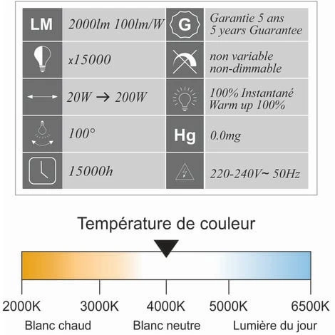 - Durée de vie : 15 000 heures