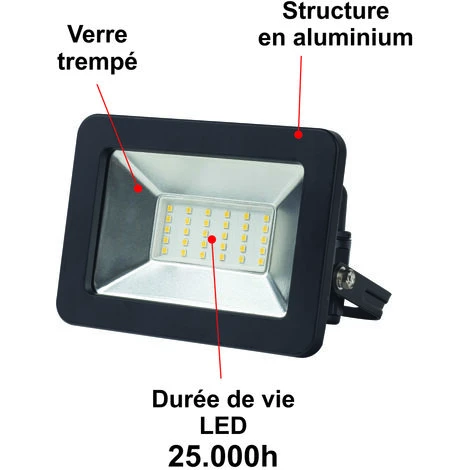 Ce projecteur à LED intégrée de 30W remplacera vos anciens projecteurs à halogène équivalant à 250W.